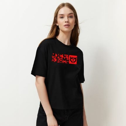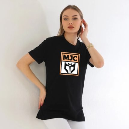 تيشرت حريمي صيفي اسود مع لوجو MJC بيج