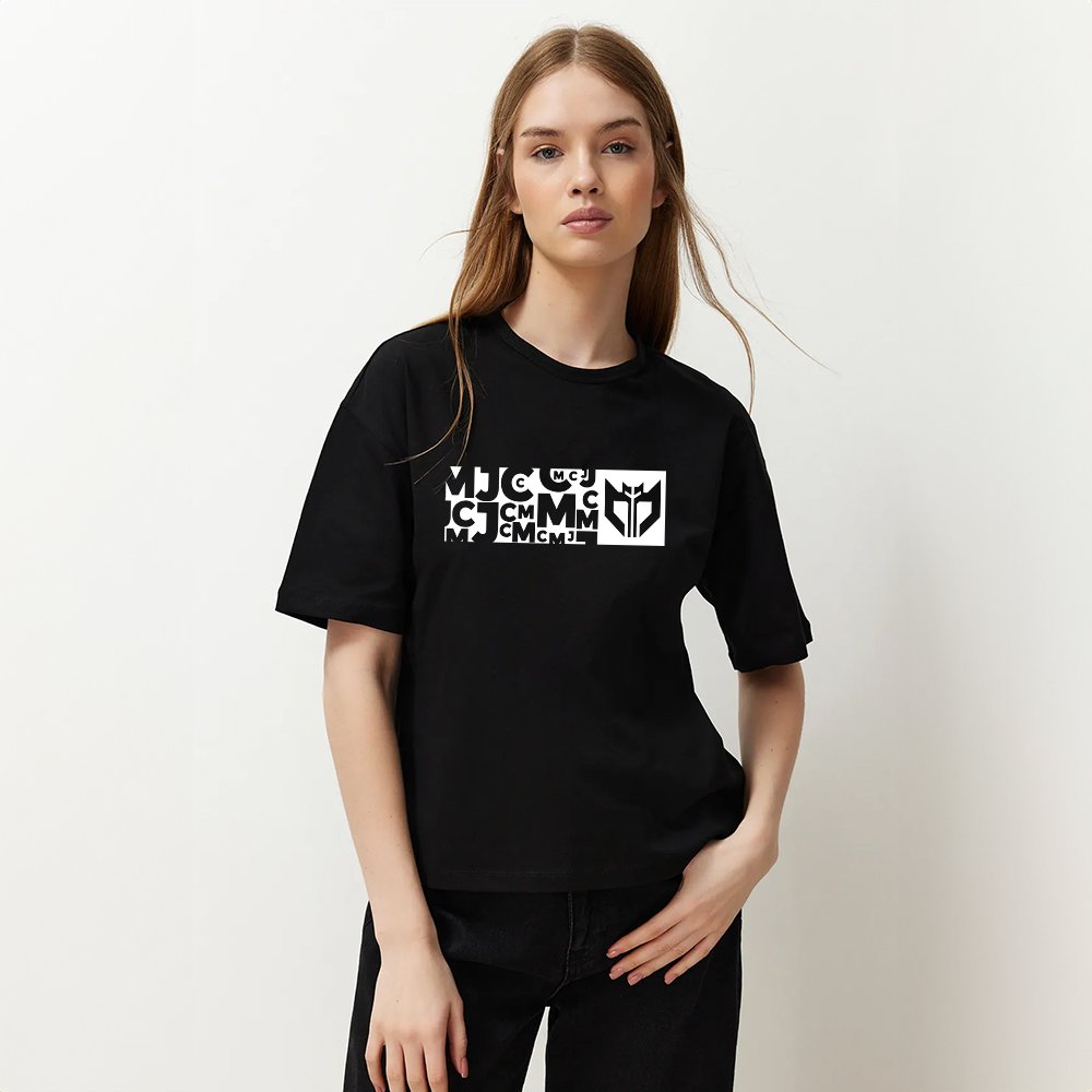 اطلبي الآن تيشيرت صيفي نسائي أسود مع لوجو MJC وتمتعي بإطلالة صيفية مريحة وأنيقة في كل يوم!