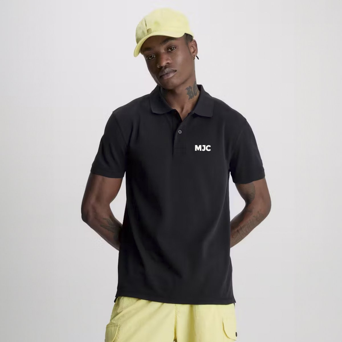A minimalist design featuring the MJC logo on the chest, providing a clean, stylish look on your black polo. -