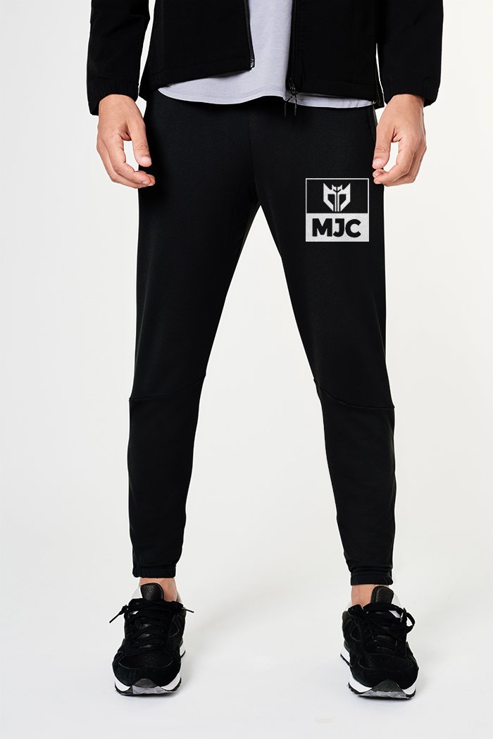 Sleek black joggers featuring the MJC logo for a trendy look.