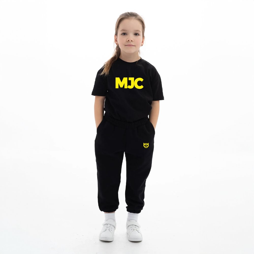 Introducing the MJC black kids’ fashion collection, a perfect blend of comfort, style, and practicality for your little ones. Made from a high-quality cotton blend, this collection ensures breathability and durability, allowing kids to stay active and comfortable throughout the day. The stylish black design with various logo color options, including yellow, gold, pink, red, sky blue, and strong magenta, offers versatile fashion suitable for any occasion, from casual playdates to outdoor adventures.